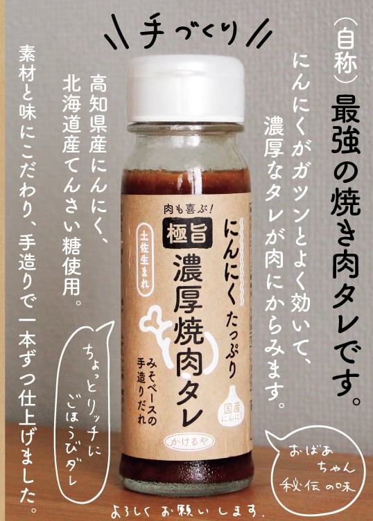 四万十町のおばあちゃんが30年来手造りしてきた焼肉のたれの味を引継ぎ、皆さんにお届けします。